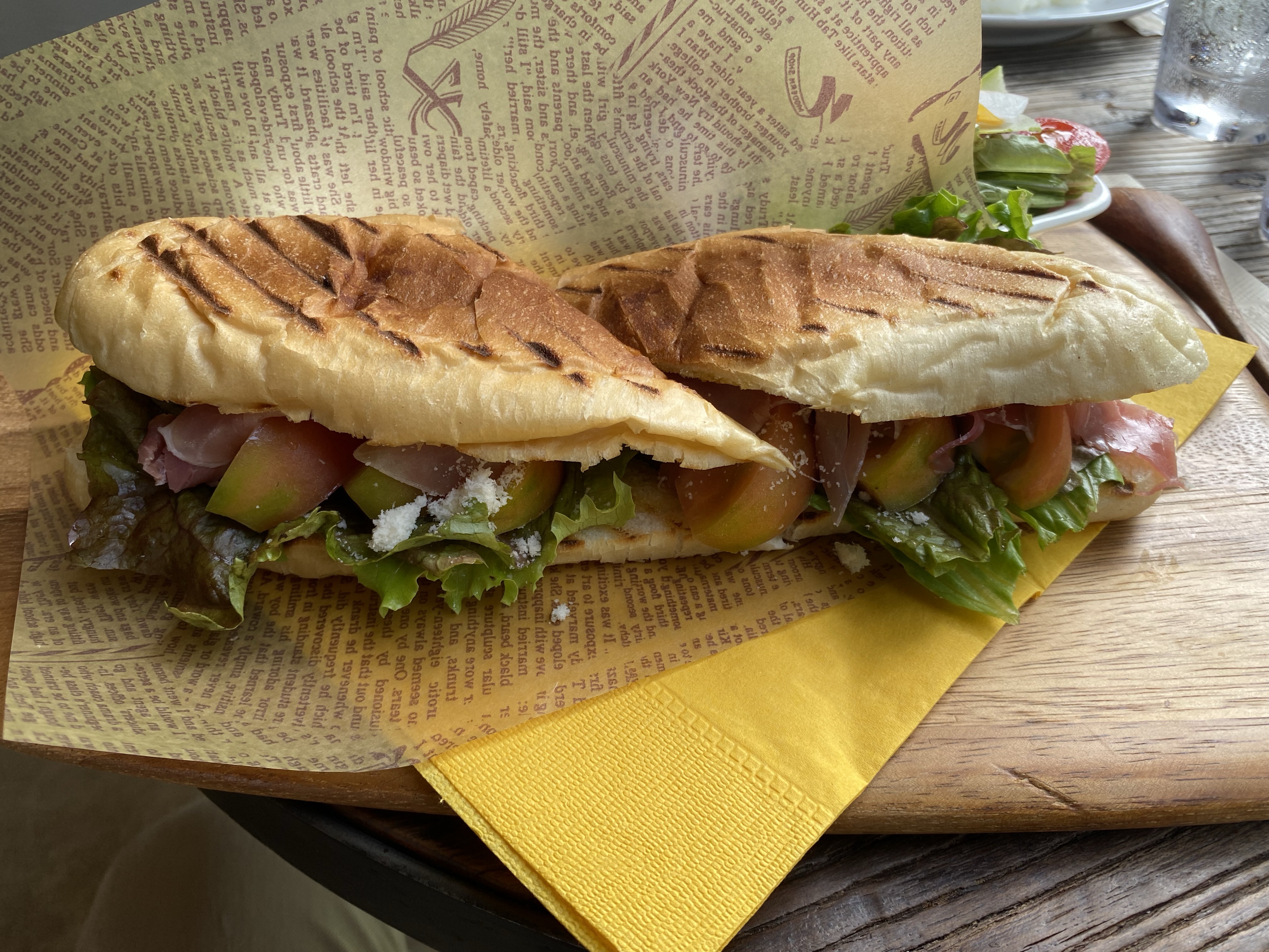 The daily specials are written on these cute chalkboards. The café has a normal set menu of paninis, rotational meat & fish dishes, daily specials and pasta dishes. They also have drink and cake sets that we can add to any of the meals. For our main courses we chose the prosciutto with fresh greens panini and the beef tagliata. We decided to supplement our brunch with a cake set. We chose the rum raisin flavored tea and the kabocha montblanc.