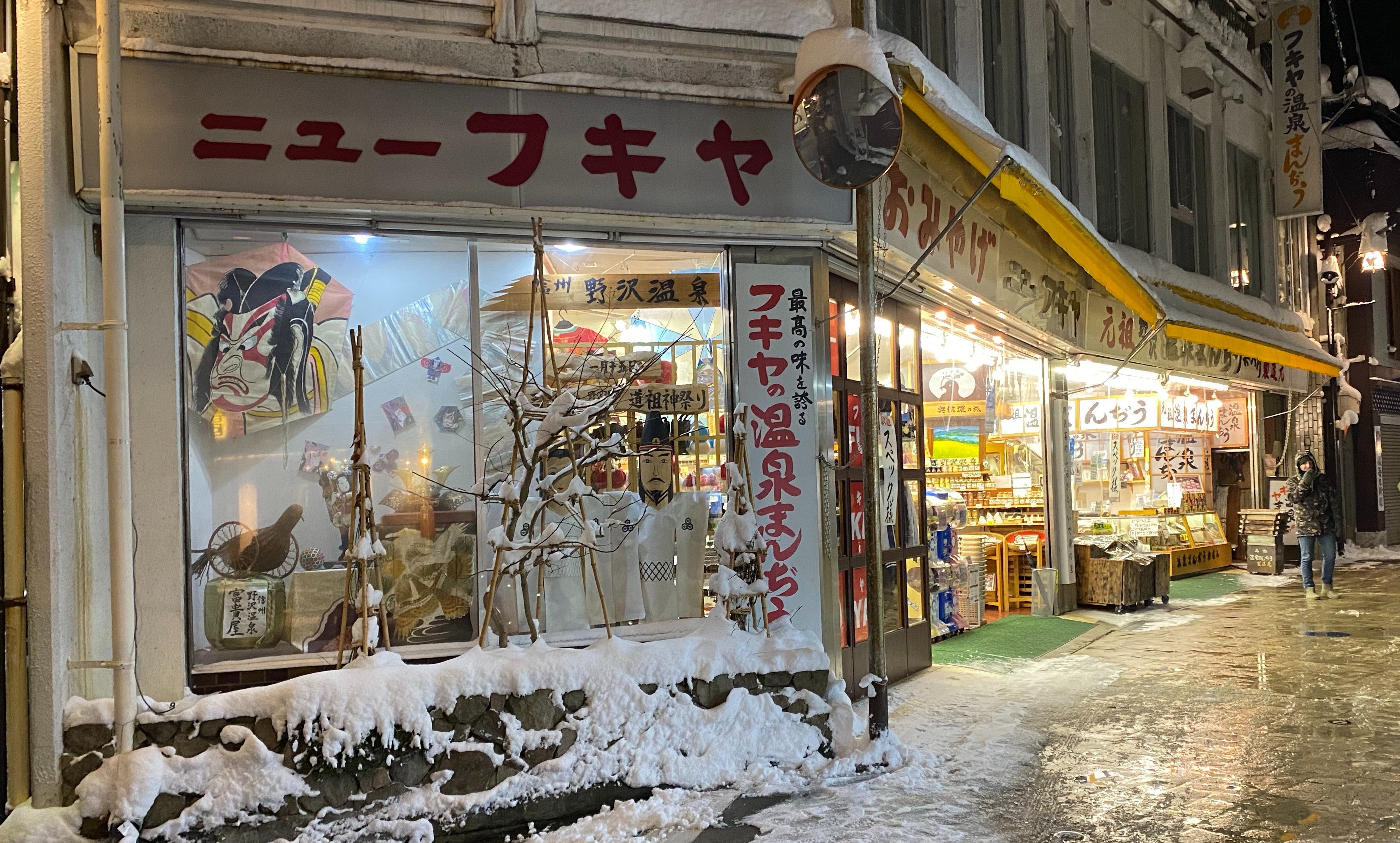 After dinner we stopped by Fukiya Shop which was just around the corner on the main road. It was a really large omiyage (souvenir) shop with a wide assortment. We picked up a couple of things to try. We tried to focus on Nagano specific products like apple kit kat, fresh apple juice, etc..