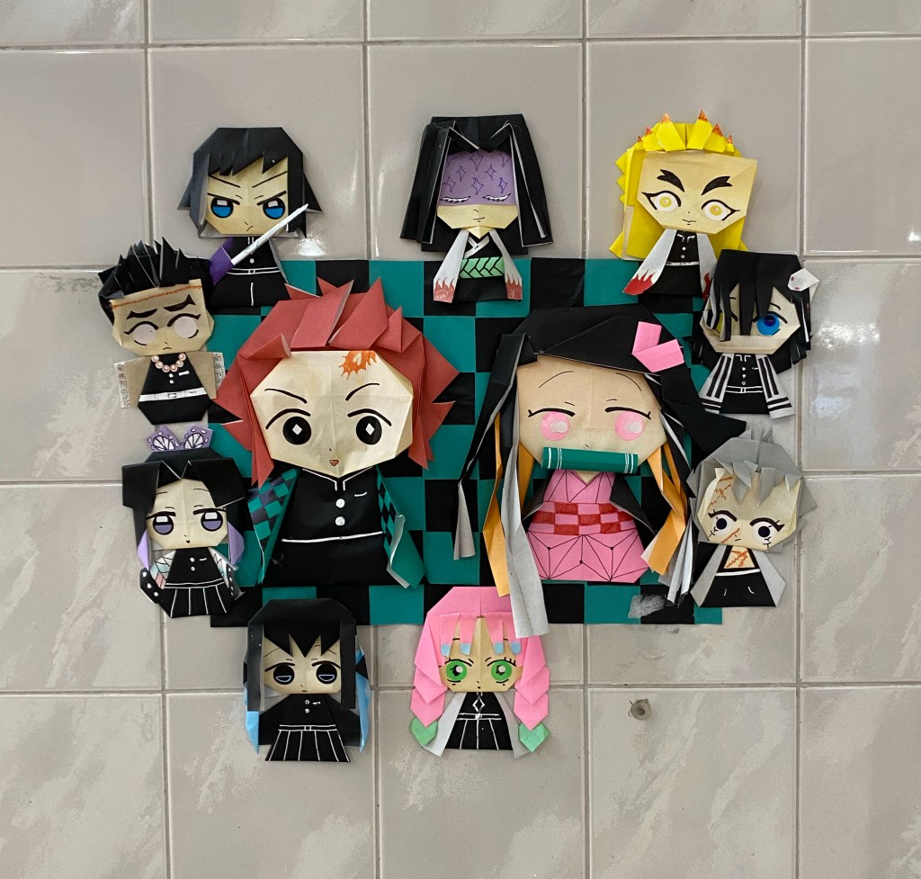 The restrooms were large and very clean. They had these cute Kimetsu no Yaiba (Demon Slayer) origami inside. It was also Tanabata season and there was this nice display just outside of the restrooms.