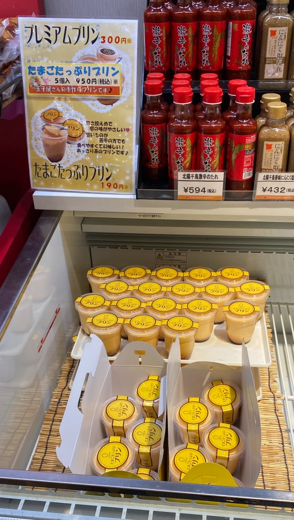 It was a little too early to get any food, but we did stop by the souvenir shop. We were surprised with the size and variety of goods they carried. We looked around a bit before picking up some shrimp senbei (rice crackers), a premium pudding, and a set of their cute jelly.